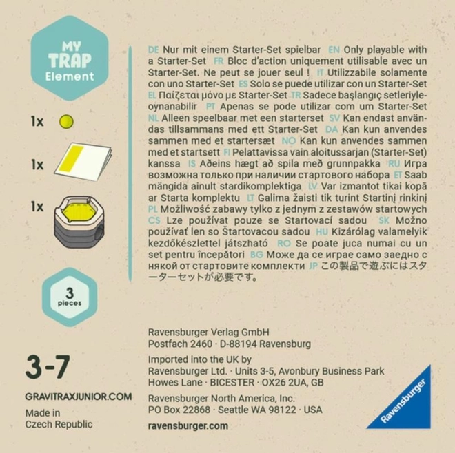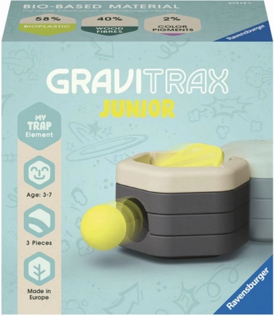 Amplia la tua pista a biglie GRAVITRAX JUNIOR con l'accessorio Trappola, che crea una caduta magica – la biglia viene inghiottita e rilasciata a un livello inferiore. Grazie al bioplastica di origine legnosa è sicuro e resistente per bambini dai 3 anni e porta più suspense e divertimento senza fine nella costruzione creativa di mondi a tema.