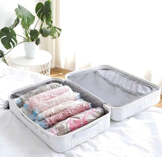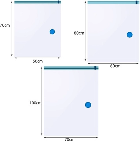 I sacchetti per conservazione sottovuoto sono ideali per risparmiare spazio e proteggere i tuoi oggetti da polvere, sporco, umidità e parassiti. Il set include sacchetti di diverse dimensioni che, dopo l'aspirazione dell'aria, riduce il loro volume fino all'80%. Perfetto per uso domestico e viaggi.