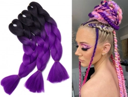 Questo stile ombre viola brillante è ideale per acconciature originali che puoi cambiare in base all'occasione. Crea un look mozzafiato per festival, carnevali o altri eventi con queste treccine versatili.