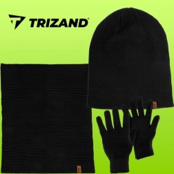 Set invernale Trizand – protezione ideale contro il freddo. Il set comprende un cappello, una sciarpa e guanti, realizzati in caldo acrilico di colore nero universale.