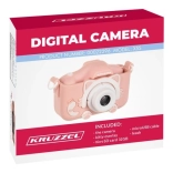 Adorabile fotocamera per bambini KRUZZEL con schermo da 2'' che consente di scattare foto e registrare video in Full HD, con fotocamera frontale per selfie, 5 giochi integrati e tanti cornici e filtri divertenti. Inclusi scheda da 32 GB, cover protettiva in silicone con orecchiette da gatto, laccetto e cavo USB – la prima fotocamera ideale per piccoli fotografi dai 3 anni in su.
