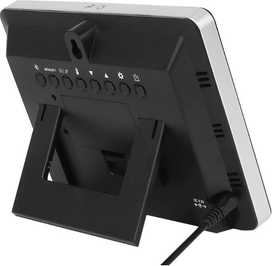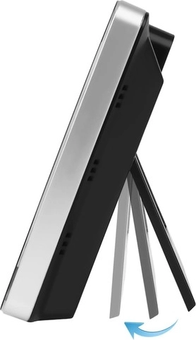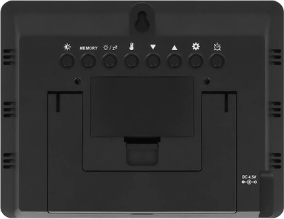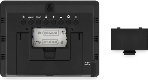 Il sensore esterno wireless trasmette i dati fino a 60 metri, così puoi posizionarlo facilmente su balcone, terrazza o in giardino. La stazione mostra contemporaneamente valori interni ed esterni, prevede l’evoluzione del meteo per 12–24 ore e avvisa in caso di calo sotto la temperatura impostata. La retroilluminazione può essere continua con alimentazione a cavo oppure, per risparmiare energia, a batterie con illuminazione temporanea al tocco.