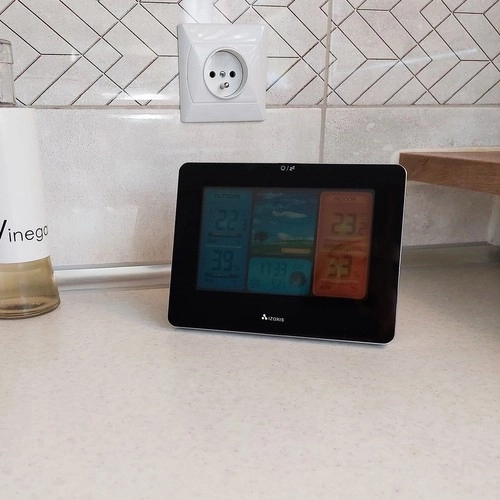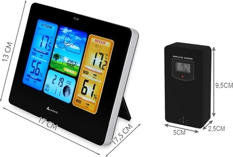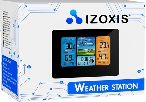La moderna stazione meteo wireless IZOXIS con display LCD a colori e di facile lettura misura temperatura e umidità all’interno e all’esterno, mostra pressione, tendenze meteo e fasi lunari. Grazie al sensore esterno con segnale fino a 60 m ottieni una panoramica affidabile delle condizioni attorno a casa. Non mancano la previsione per 12–24 ore, allarme di temperatura, orologio e data e una pratica retroilluminazione per una lettura facile di giorno e di notte.