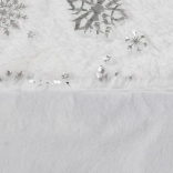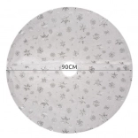 Bellissima gonna di Natale bianca per albero con un diametro di 90 cm, decorata con fiocchi di neve argentati. Ideale per creare un'atmosfera natalizia magica a casa.