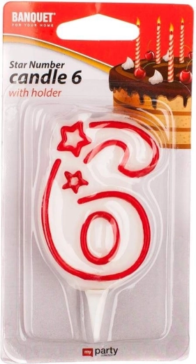 Candela di compleanno n. 6, con piolo in plastica incluso.