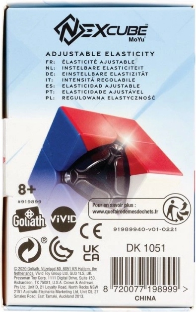 Il Nex Cube di Goliath è un cubo unico prodotto dalla rinomata e apprezzata azienda MoYu. Il cubo è dotato di plastiche a colori pieni al posto degli adesivi, che si graffiano facilmente. Il centro del cubo (le facce centrali) è rimovibile e sotto il centro si trova una vite che consente di regolare la tensione delle singole facce. Il cubo è equipaggiato con elementi appositamente sagomati grazie ai quali “taglia” gli angoli in modo fluido, accelerando ulteriormente la risoluzione.