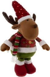 La renna ha un’altezza regolabile grazie alle gambe telescopiche e al cappello modellabile, consentendo di adattarla facilmente alla tua decorazione. Inoltre, il suo design allegro è arricchito da un cappotto e da una sciarpa multicolori, contribuendo alla magica atmosfera natalizia.