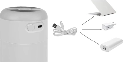 Cavo USB‑C, filtri di ricambio e alimentazione universale da notebook, adattatore o power bank. Il funzionamento sicuro è garantito dall’auto‑off in caso di mancanza d’acqua.