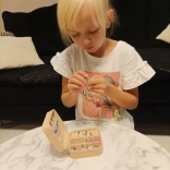 Il set comprende un totale di 69 pezzi, che permettono ai bambini di creare braccialetti e collane variopinti con diversi motivi. Sviluppano le loro abilità di creatività e manualità e allo stesso tempo promuovono la cooperazione durante il gioco con altri bambini.