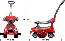 La soluzione intelligente 3 in 1 offre tre modalità d’uso: modalità sicura con barriere protettive e poggiapiedi per i più piccoli, modalità con asta di guida per un facile controllo da parte del genitore e classico cavalcabile per la guida autonoma, quando il bambino riesce già a toccare terra con i piedi. Grazie a ciò è un giocattolo universale che cresce con il tuo bambino e si adatta alle sue abilità.