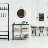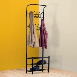 Nella parte inferiore dell'appendiabiti troverai tre ripiani funzionali dove puoi riporre piccoli capi di abbigliamento, borse e persino scarpe. La struttura stabile con 4 piedi assicura stabilità anche sotto carichi maggiori.