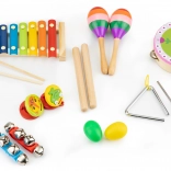 Da maracas e nacchere a triangolo, tamburello e piattini – il set variegato stimola la creatività e la collaborazione di tutta la famiglia.