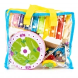 Colorato set di strumenti musicali per bambini dai 3 anni del marchio ECOTOYS. Include in totale 14 pezzi e una pratica borsa trasparente per un facile trasporto. Supporta lo sviluppo della motricità, la percezione uditiva e il senso del ritmo. Realizzato in legno e metallo di qualità, privo di elementi pericolosi e certificato CE/EN71.