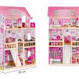 La casetta per bambole ECOTOYS è progettata per il gioco creativo e lo sviluppo dell'immaginazione dei bambini. È composta da tre livelli indipendenti, con un totale di cinque stanze che imitano perfettamente una casa reale. Ogni stanza è dotata di mobili e decorazioni che possono essere facilmente spostati secondo le preferenze del bambino.