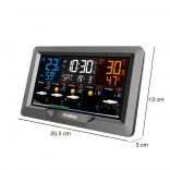 La stazione meteorologica intelligente METEO SP101 con connessione Wi‑Fi consente di monitorare il meteo ovunque tramite l’app Smart Life (TUYA). Misura temperatura interna ed esterna e umidità, dispone di memoria min./max., previsioni meteo online per 5 giorni, indicatore UV, sveglia con snooze e può essere appoggiata o appesa alla parete.