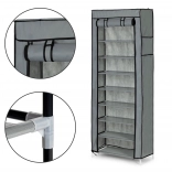 Il robusto telaio in tubi metallici con giunti in plastica assicura la solidità dell’intera struttura. I ripiani in tessuto resistente sono tesi tra i tubi, aumentando la rigidità e permettendo un’organizzazione comoda e ordinata. Grazie alla distanza tra i ripiani di circa 15 cm è facile organizzare sia i capi sia le calzature.