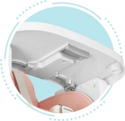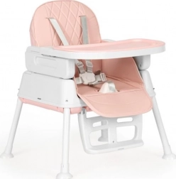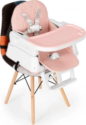 La sedia è regolabile in altezza. È possibile rimuovere facilmente le gambe e il poggiapiedi, così il seggiolone alto può essere trasformato in una sedia più bassa. Un elemento unico della sedia è la seduta, che si può utilizzare fissandola a una sedia da pranzo o da cucina. Nel set sono inclusi speciali cinghie di fissaggio per la seduta e lo schienale di una sedia classica.