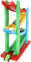 Il set include uno scivolo in legno con 4 piste di diversi colori e 4 macchinine. Tutto è realizzato in legno, garantendo un elevato standard di sicurezza.