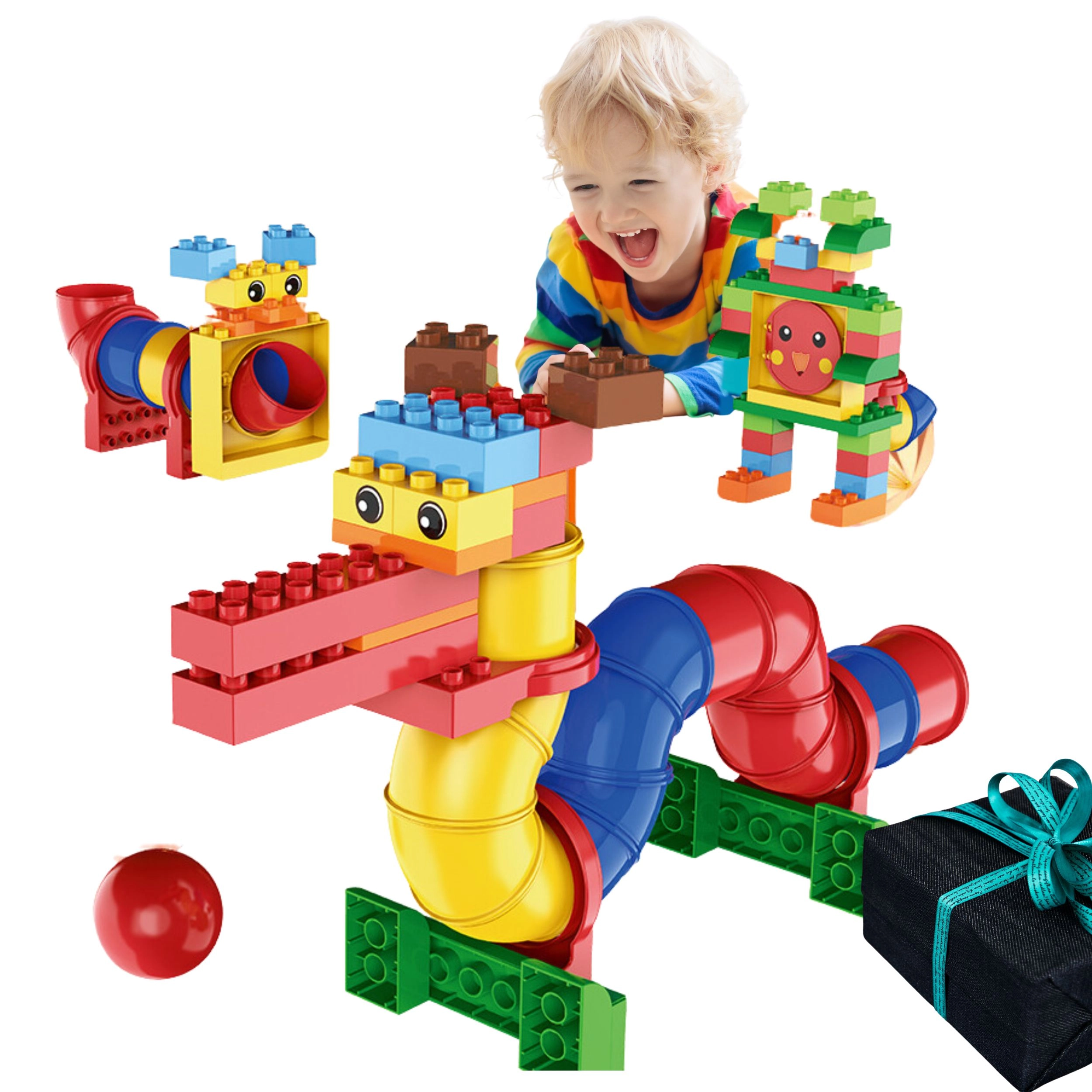 Il set offre ricche possibilità di gioco: i bambini possono costruire fino a 20 modelli diversi e provare come la pallina scorre attraverso i segmenti tubolari. I pezzi più grandi, “chunky”, sono comodi per le manine e incoraggiano esplorazione autonoma e creatività.