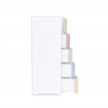 La sicurezza d’uso è garantita dalle chiusure dei cassetti, che ne impediscono l’estrazione accidentale: una soluzione ideale negli spazi frequentati dai bambini. La plastica resistente e il telaio bianco pulito con cassetti pastello donano all’ambiente un look moderno.