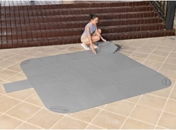 È incluso anche un tappetino separato per la pompa, che garantisce un posizionamento stabile e sicuro dell’unità di riscaldamento/filtrazione. Se avete una vasca più grande di 196 × 196 cm, potete semplicemente collegare più set per ottenere la superficie protettiva necessaria.
