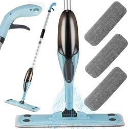 Mocio piatto con spruzzatore rotante robusto con 3 panni in microfibra