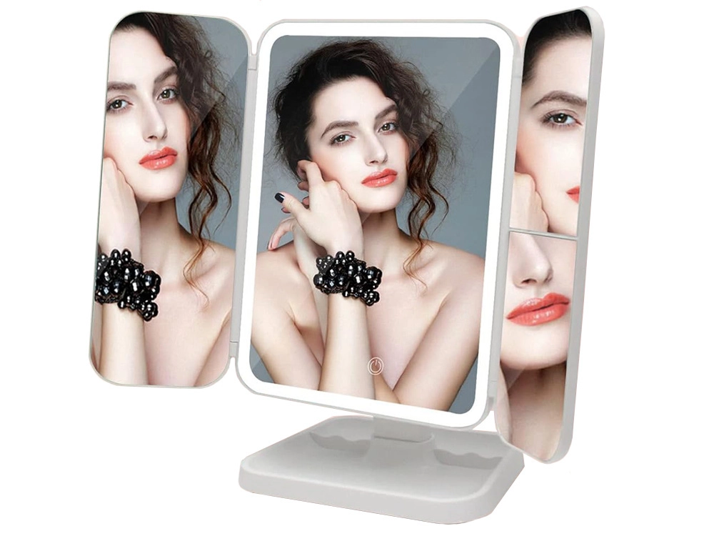 Specchio cosmetico pieghevole a LED per trucco con triplo pannello