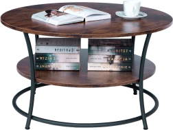 Due piani rotondi in finitura rovere rustico offrono spazio pratico per appoggiare ed esporre i tuoi oggetti preferiti.