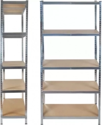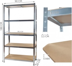 Scaffale stabile in acciaio zincato con ripiani in MDF spessi, adatto a carichi elevati e uso quotidiano. Ogni ripiano è rinforzato da una traversa per maggiore stabilità; i terminali in gomma sui piedi proteggono il pavimento e impediscono lo scivolamento. Grazie ai fori ogni 3 cm, regoli facilmente l’altezza dei ripiani in base agli oggetti riposti.