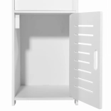 Questo mobiletto bianco e stretto è progettato per sfruttare efficacemente anche gli spazi molto ridotti. Gli spazi di archiviazione aperti e chiudibili permettono di nascondere detergenti o cosmetici e, allo stesso tempo, di avere a portata di mano gli oggetti di uso frequente. L’aspetto arioso e moderno dona all’ambiente leggerezza e pulizia.