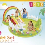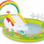 Crea per i bambini il loro mondo acquatico in giardino con il centro giochi gonfiabile a tema giardino. La piscinetta colorata con scivolo, spruzzatore ad arco arcobaleno e ricchi accessori (farfalline, funghetti, palline) offre ore di divertimento in sicurezza. Grazie alla capacità di 450 l, all'altezza della parete di 13 cm e alla portata massima di 54 kg è ideale per i più piccoli dai 2 anni.