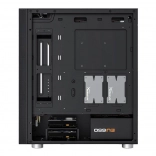 Il case offre un airflow studiato e un ampio supporto al raffreddamento: frontale fino a 360 mm, superiore 240 mm e posteriore 120 mm. In totale ospita fino a 7 ventole, mantenendo basse le temperature anche per build ad alte prestazioni. Il montaggio è facilitato da viti a mano, alloggi per 2× 3,5" HDD e 2× 2,5" SSD e gestione ordinata dei cavi.