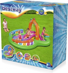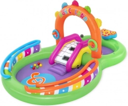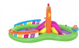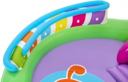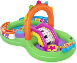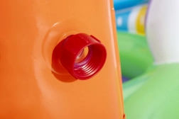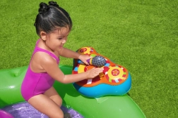 Esplora e divertiti con le tante funzioni del centro giochi acquatico gonfiabile Sing and Splash. Il centro giochi include un microfono e un tamburo con cui i bambini possono giocare liberando la fantasia. Le doppie piscine sono collegate da uno scivolo removibile fissato con corde e passanti. Nel pavimento è integrato un cuscino gonfiabile per un atterraggio morbido dallo scivolo. L’arco con irrigatore incorporato si collega semplicemente al tubo da giardino. Sugli spuntoni dell’arco si possono lanciare anelli gonfiabili. Il set include 6 palline colorate che si possono far scendere sia da una rampa che dall’altra. Questi giochi non sono solo divertenti, ma sviluppano anche la coordinazione occhio-mano. Volume d’acqua consigliato: piscina piccola 114 l, piscina grande 235 l. Dimensioni del centro giochi gonfiato: 295 x 190 x 137 cm. Contenuto: 1 piscinetta, 1 scivolo, 1 tamburo, 2 anelli gonfiabili, 1 microfono, 6 palline colorate, 1 toppa di riparazione. Età consigliata: 2+.