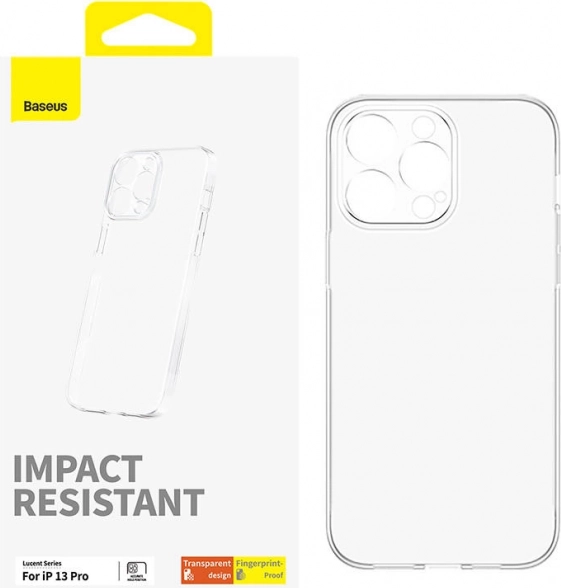 Proteggi il tuo iPhone 13 Pro con la custodia resistente Baseus OS-Lucent Series, che offre elevata resistenza alle cadute e mantiene l'aspetto estetico grazie alla resistenza alle impronte digitali.