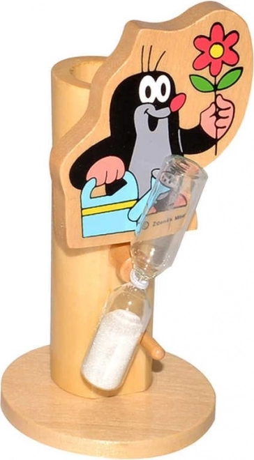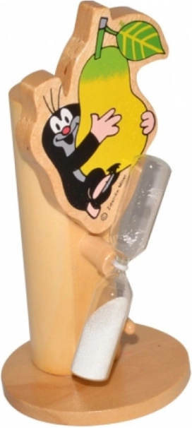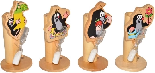 Supporto in legno per spazzolino con il popolare motivo di Krtek e i suoi amici, che rende la pulizia dei denti dei bambini più piacevole con clessidra a sabbia.