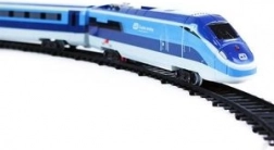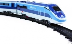 Il set comprende una locomotiva, due vagoni, 12 binari curvi e 8 dritti per una lunghezza totale di 4,8 m. Gli elementi del tracciato si incastrano facilmente e possono essere combinati liberamente. Il set è compatibile con il popolare treno REGIOJET e può essere ampliato con ulteriori binari e scambi (venduti separatamente).