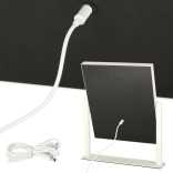 Il design minimalista in bianco e il robusto telaio in metallo con supporto stabile e rivestimento antiscivolo assicurano un uso confortevole anche durante la regolazione dell’angolo. Lo specchio è ideale per il trucco quotidiano, i rituali di bellezza e le rifiniture dettagliate di sopracciglia e pelle.