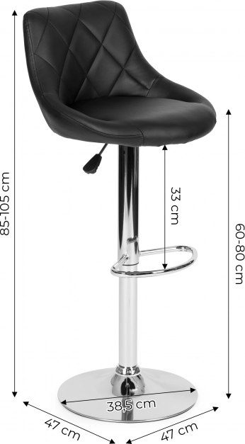 Questo elegante sgabello da bar offre comfort con una seduta ergonomica e morbida rivestita in eco-pelle. Grazie al sollevatore pneumatico è possibile regolare facilmente l'altezza della seduta secondo necessità, garantendo una seduta comoda al tavolo o al bancone del bar. La leva speciale permette di abbassare o alzare la seduta.