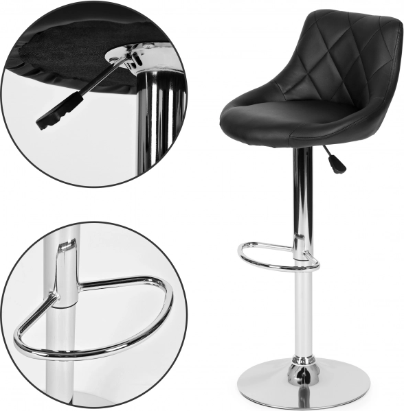 Questo sgabello da bar moderno con telaio cromato e seduta nera in eco-pelle è una scelta eccellente per ogni interno. Si adatta sia a spazi moderni che classici.