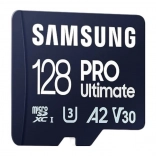 Samsung PRO Ultimate microSDXC con capacità di 128 GB offre prestazioni di alto livello per trasferimenti rapidi e registrazioni 4K fluide. Con velocità fino a 200 MB/s in lettura e 130 MB/s in scrittura, gestisce in modo affidabile file di grandi dimensioni, registrazioni sequenziali e lavoro con le app.