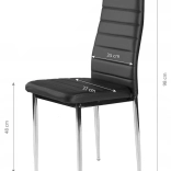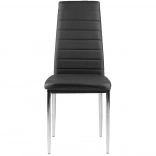 Scegli un design senza tempo e pratico. Il rivestimento nero in ecopelle si abbina perfettamente alle gambe cromate lucide, rendendo le sedie adatte sia ad ambienti moderni sia classici. Lo schienale alto, ergonomicamente sagomato, e la morbida imbottitura favoriscono una postura corretta e un comfort elevato durante lunghe cene.