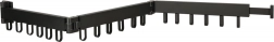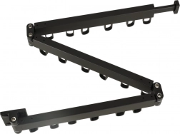 La barra ad angolo con ganci fissi e snodo consente di riporla lungo la parete e di aprirla solo quando serve.