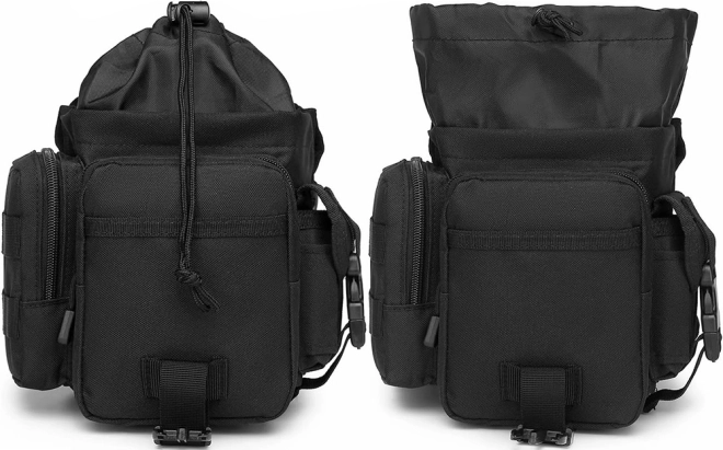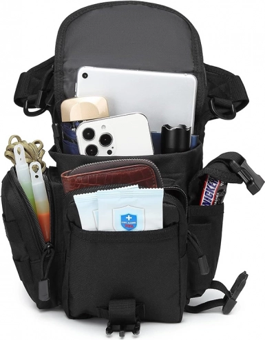 La disposizione intelligente delle tasche, inclusa la tasca per torcia o penna e il porta moschettone, mantiene telefono, portafoglio, chiavi e piccoli attrezzi al loro posto. Il tessuto resistente con trattamento idrorepellente e le cuciture robuste si dimostrano affidabili sia sul campo sia in città. Grazie al fissaggio alla vita e alla coscia hai le mani libere e l’attrezzatura sempre a portata di mano.