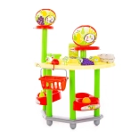 Il set include diversi tipi di merce, frutta e altri accessori che i bambini ripongono nel cestino e sugli scaffali. Grazie ai colori vivaci, classificare e scegliere è divertente e intuitivo.