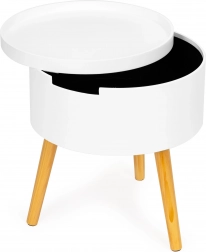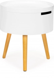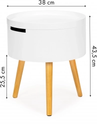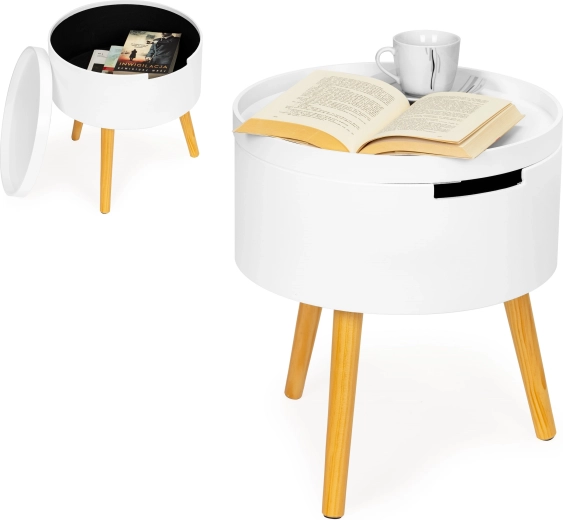 Goditi il design elegante e funzionale del tavolino rotondo da caffè ModernHome, perfetto per il soggiorno, la camera da letto o l'ufficio. Dotato di un piano rimovibile che funge anche da vassoio. La struttura stabile in legno di pino con un diametro del piano di 38 cm assicura tutto a portata di mano.