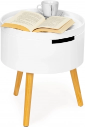 Specifiche: Il tavolino ha un diametro di 38 cm e un'altezza di 43 cm, spazio di stoccaggio 36,5x14 cm e un peso totale di soli 4 kg. Imballato in cartone appositamente rinforzato e facile da montare in 5 minuti.