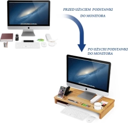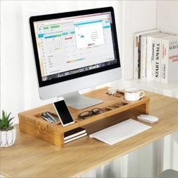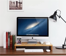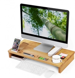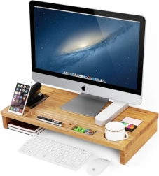 Migliora il tuo spazio di lavoro con un elegante supporto in bambù che combina ergonomia e organizzazione. Sollevando il monitor all'altezza degli occhi, riduce il carico su collo e schiena, mentre gli scomparti studiati mantengono tutto l'essenziale a portata di mano: dal telefono alla cancelleria fino alla tazza.