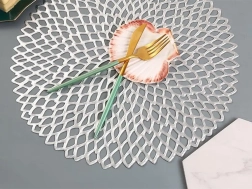 La tovaglietta traforata in elegante tonalità argento protegge la superficie del tavolo da graffi e macchie e al contempo funge da elemento decorativo di grande impatto. Grazie alla plastica resistente è leggera, pratica e impermeabile, perfetta per l'uso quotidiano e le occasioni speciali.