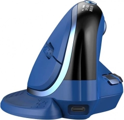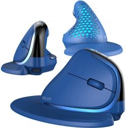 DELUX M618XSD è un mouse verticale progettato per una presa naturale e la minima tensione dei tendini. Il display OLED integrato mostra stato batteria, modalità di connessione e DPI attuale (600–4000). Grazie alla batteria da 1000 mAh dura fino a 2 settimane di uso tipico e si ricarica tramite USB‑C.