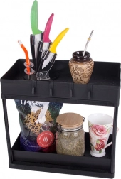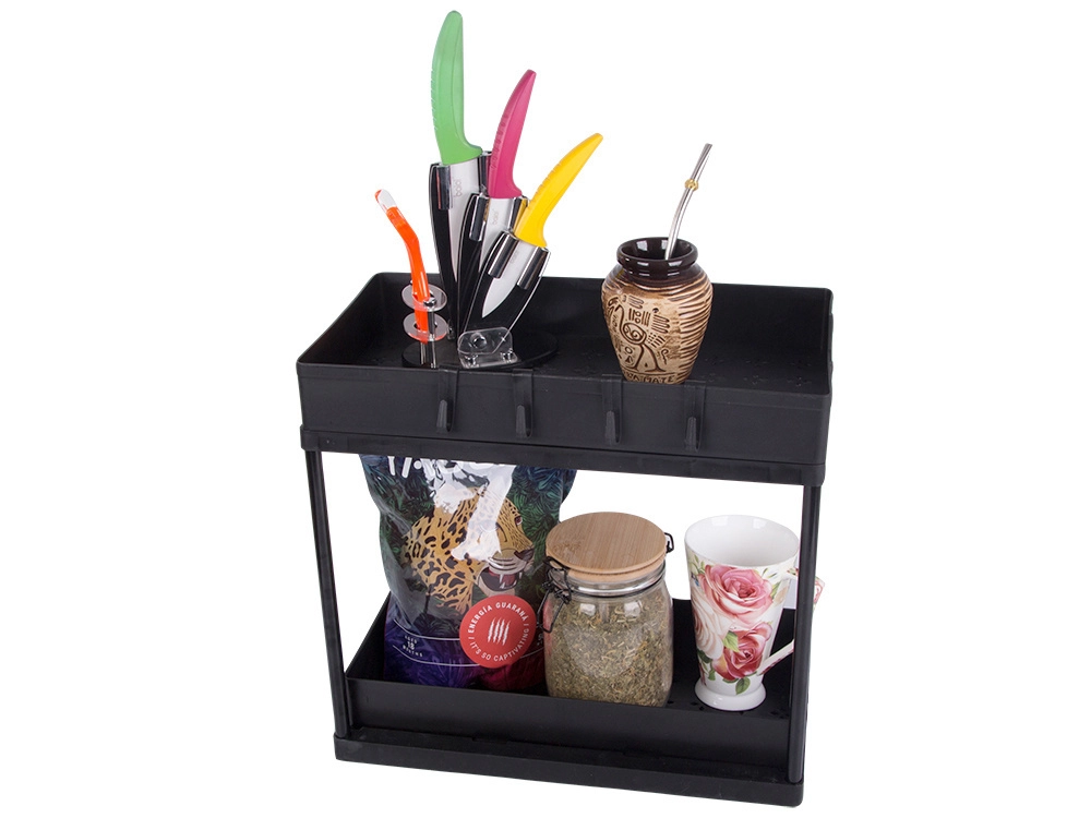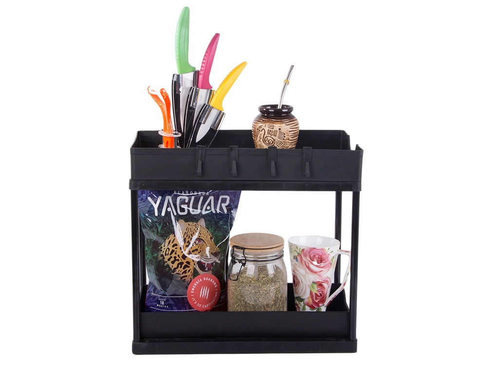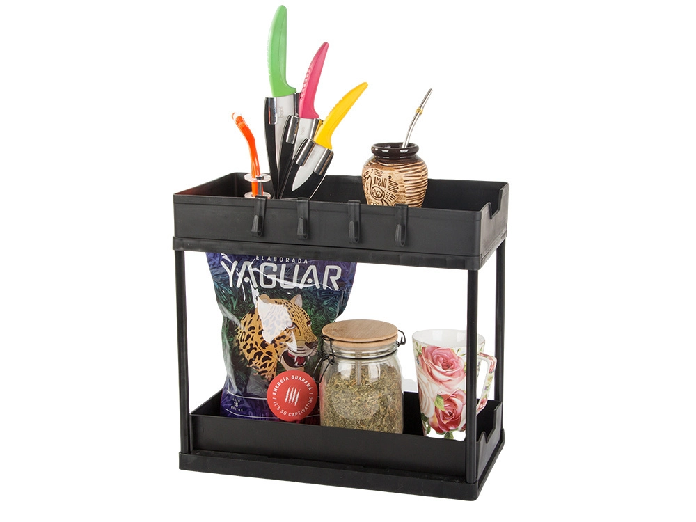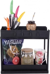 L’organizer è realizzato in plastica resistente e, grazie alla struttura studiata, massimizza l’utilizzo dello spazio sul piano di lavoro e all’interno dei pensili. Perfetto come mensola portaspezie in cucina, come supporto per cosmetici in bagno o per forniture da ufficio e scolastiche.